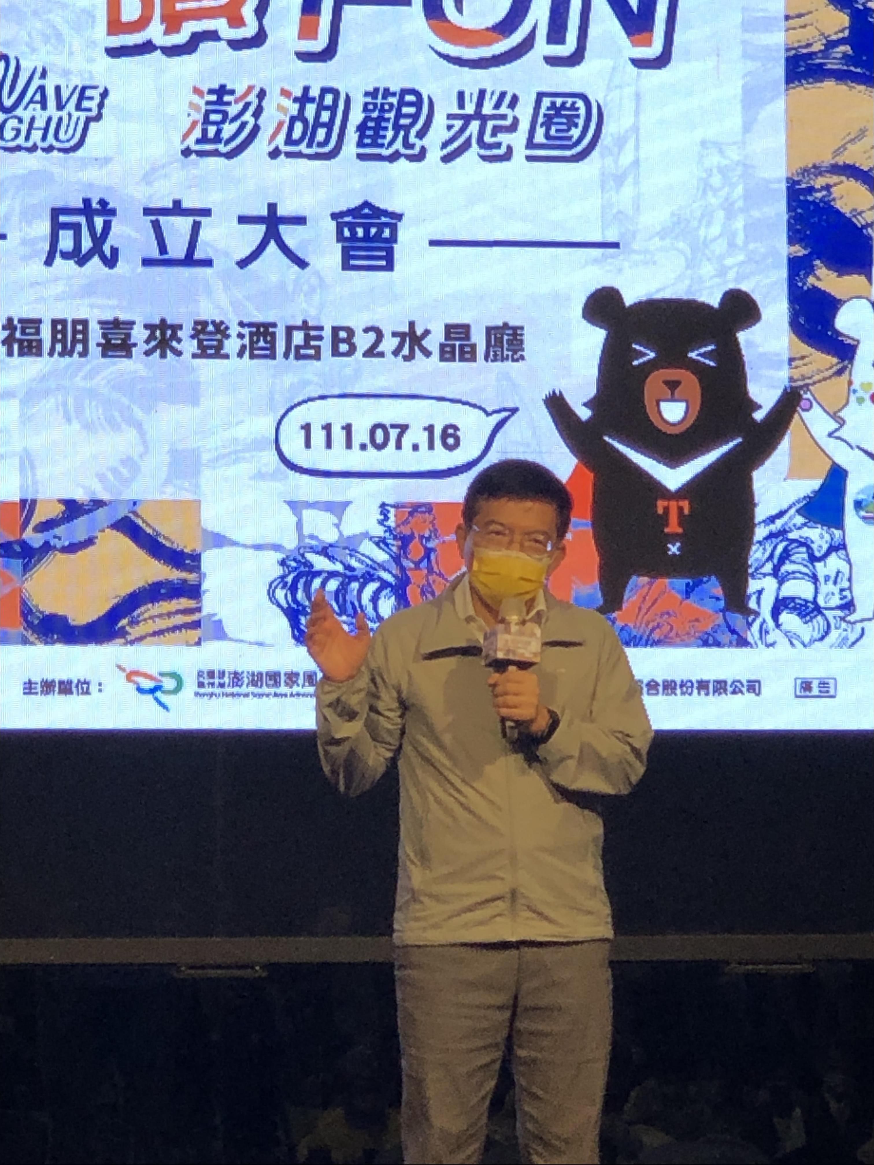 王部長進一步指出,近2年受疫情影響,觀光產業陷入低潮,大家都辛苦了,他也要感謝產業界在疫情期間所做的努力。隨著疫情的發展,國際的趨示走向與病毒共存,可以預期的是國內也會慢慢地朝向邊境開放,現在就是觀光的重要轉捩點,期待澎湖觀光業者能一起努力,整合美食美景對外行銷,共同振興觀光。