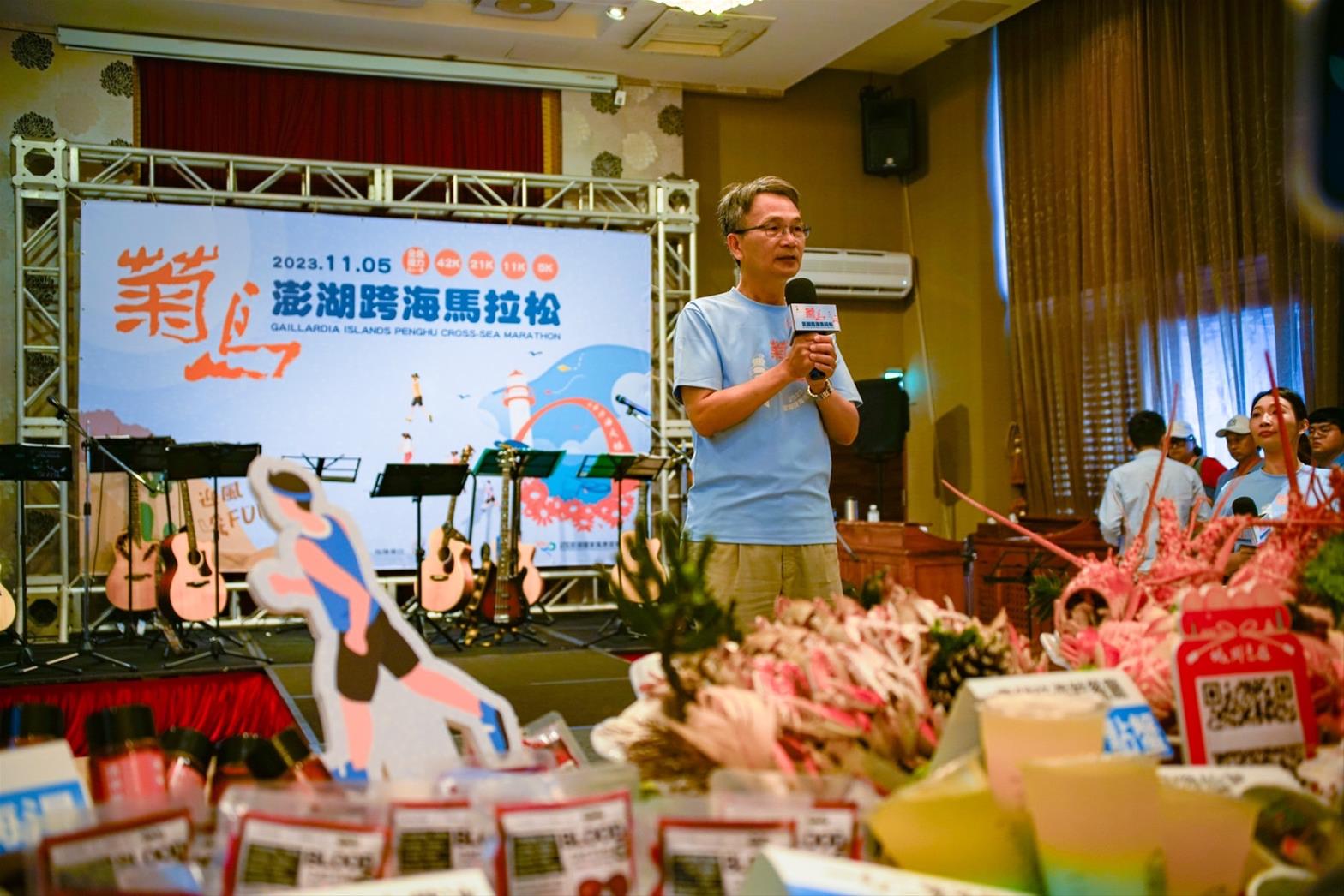 為了讓即將登場之馬拉松賽會能平安順利圓滿,來自全台超過3800名跑者能盡情瀏覽美景與品嚐特色美食,以及邀請全體縣民屆時以歡慶海島秋冬嘉年華的熱情來共襄盛舉,為跑者加油打氣,澎管處特別於本(10)月20 日上午11時在元泰大飯店舉行賽前說明會,會中除了詳細說明賽道特色及安全維護之措施外,亦針對沿途創意美食補給站及啦啦隊的配置、活動開閉幕、頒獎時間、搭車路線,以及選手之夜等進行說明。
