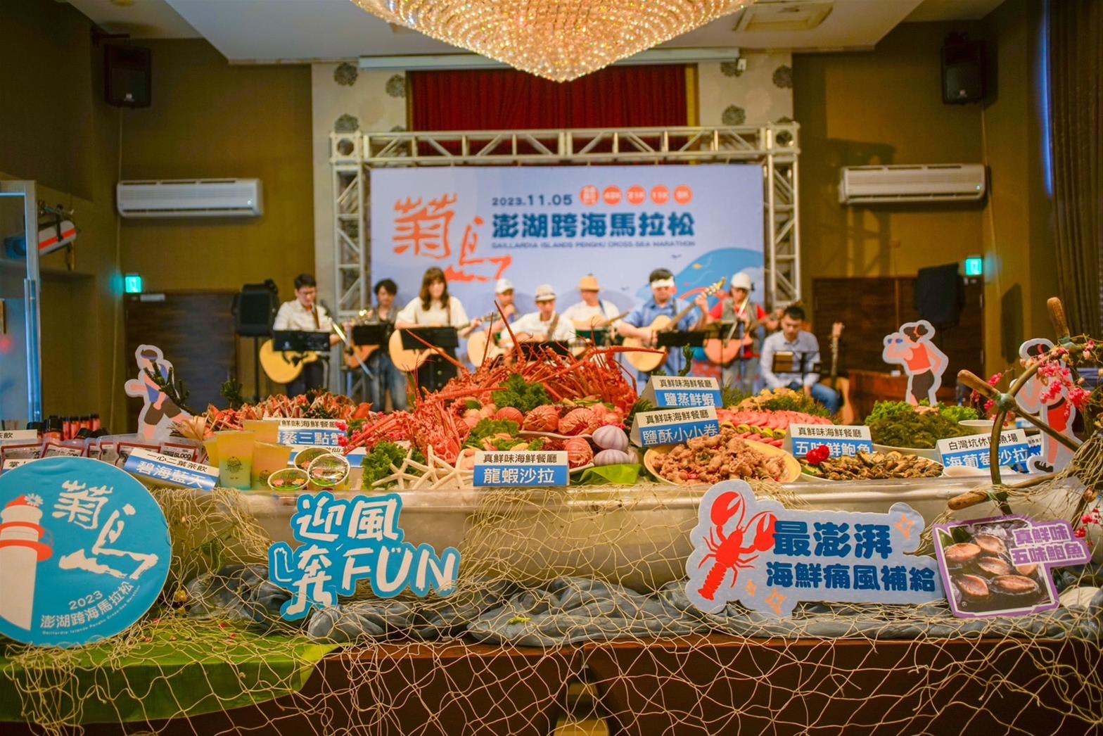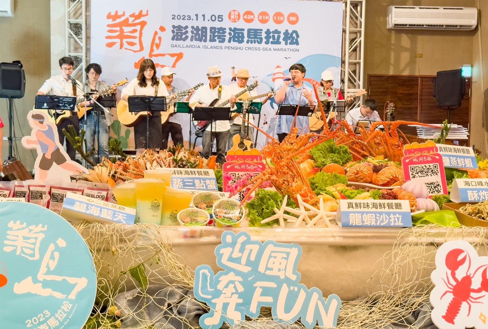 已邁入第六屆的「2023菊島澎湖跨海馬拉松」,今年在全台跑友熱烈關注之下,即將於 11 月 5日開跑,今年以「痛風海鮮餐」作為美食主打,整合超過70道在地社區特色美食補給,更特別新增11k組別,讓不同客群皆有機會體驗跑在海邊迎風向前的快感!本屆活動內容亮點十足,除了擁有世界最美麗海灣之國際級賽道外,沿途計有來自本縣各村里、社團、企業、學校等所組成之創意啦啦隊、美食補給站、補水站,以及終點站園遊會30個攤位等。融合海島風情、社區特色美食、音樂饗宴及在地熱情之嘉年華活動,將重新型塑澎湖的運動旅跑意象與浪漫、熱鬧氛圍,期為澎湖秋冬觀光季增添光采。