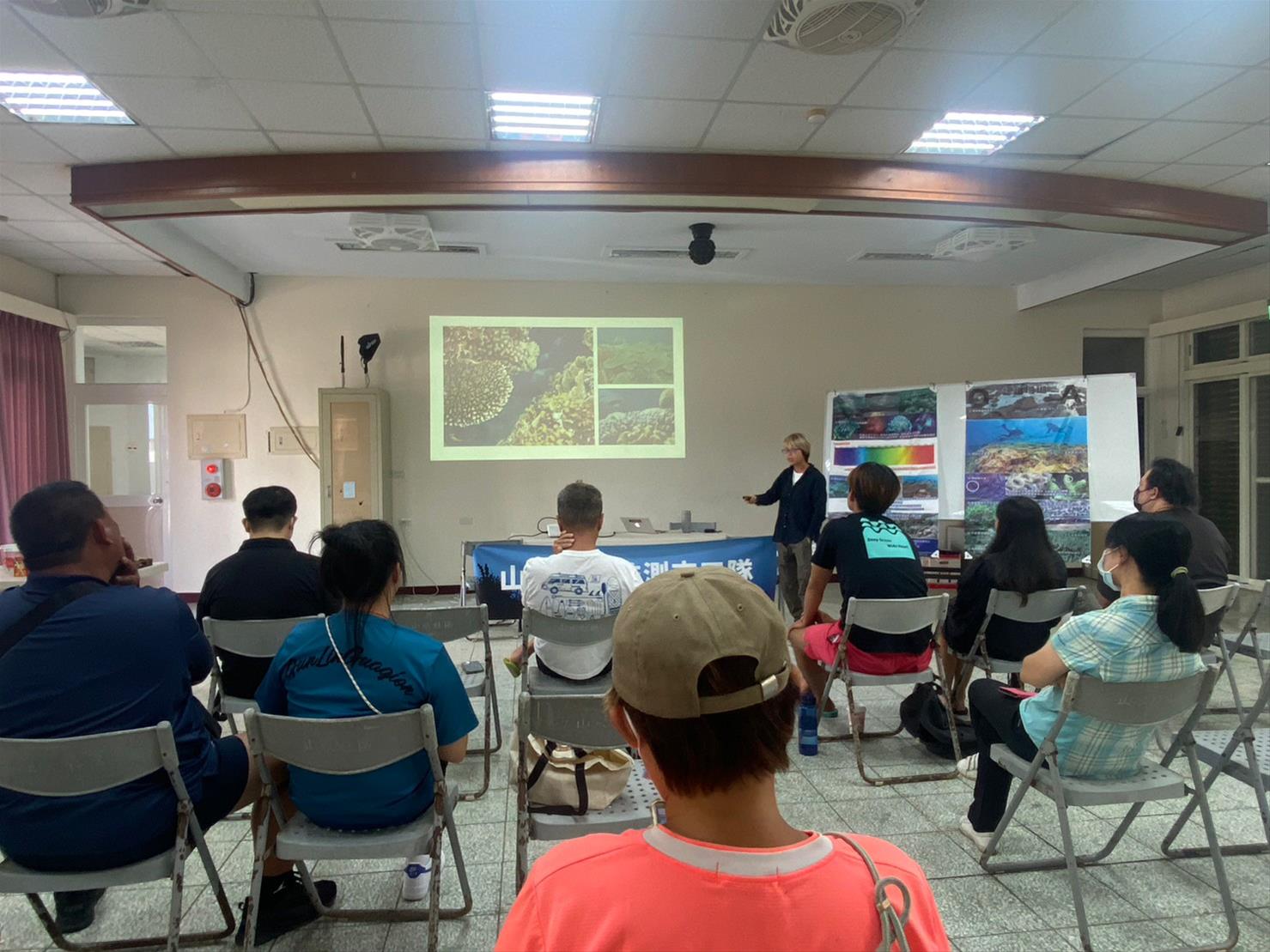 為能提升山水及鎖港兩主要潛點海洋志工的相關能力,澎管處於8月14、15日分別在山水及鎖港兩地辦理海洋監測志工培訓課程,並邀請海洋公民基金會執行長王暁嬋、生態旅遊專家吳成夫、年年有鰆執行長巫佳容,就珊瑚礁生態系介紹、珊瑚健康監測(Coral Watch),以及淨灘與海廢藝術進行培訓。課程內容不僅讓志工深度了解海洋生態保育及治理的重要性,並學習到監測海洋環境的相關知識與技能,貼近生活與產業的教材與教學方式,更讓兩社區的志工與潛水業者獲益良多。