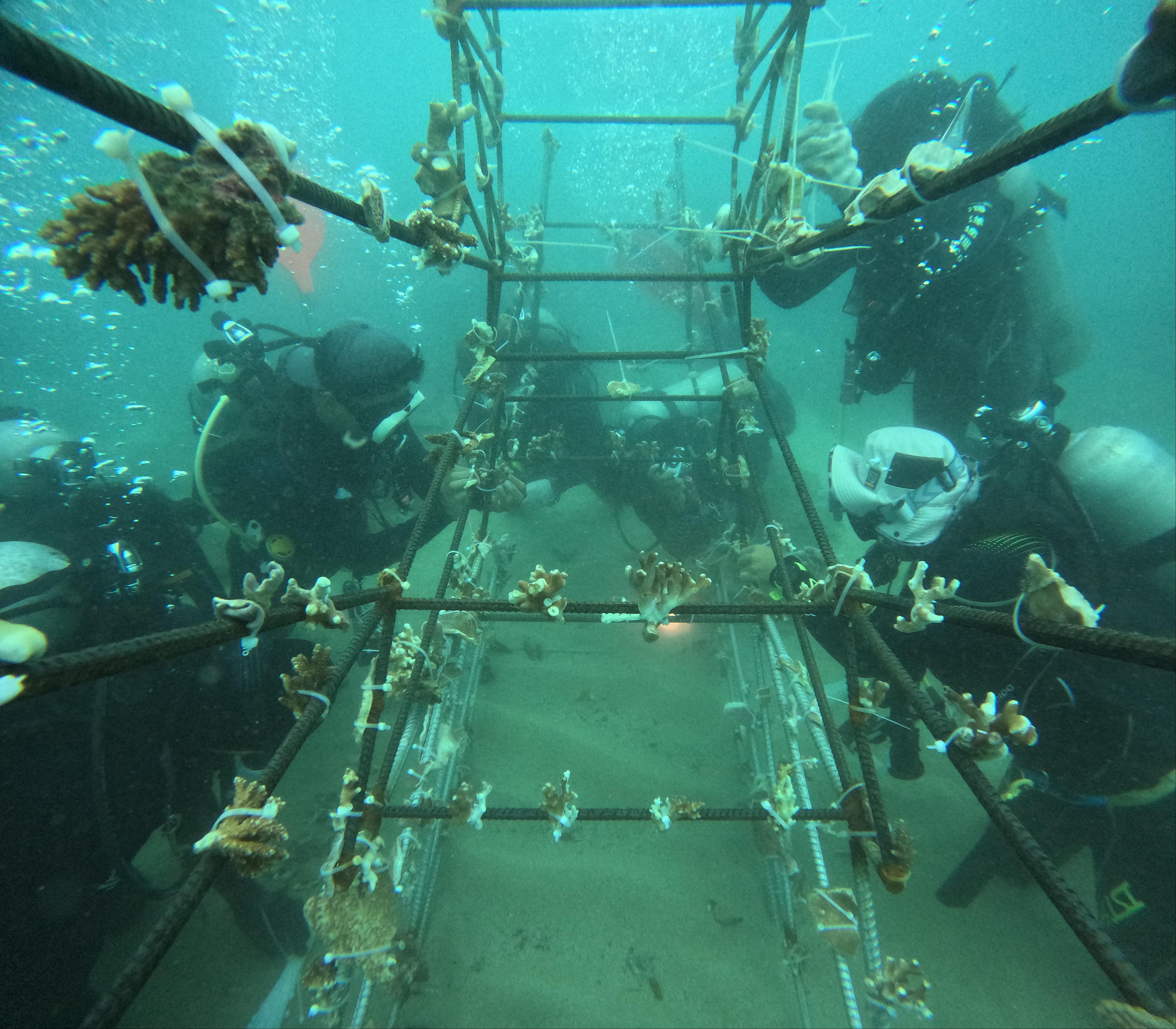 本次課程最特別的部分,是導入寶雅國際企業有限公司的ESG,並與澎湖科技大學及澎湖縣政府種苗繁殖場合作,由山水社區著名的雕刻大師陳世文為專區打造了一座以太極為意象的骨架,做為復育珊瑚的基座。主要用意就是提高社區的參與,以及藉由業者自發性及持續性的投入維護,打造山水東堤海域成為一個以太極為主題的生態礁園區。運用該議題發酵發展責任旅遊,由業者吸引更多潛水客前來參與珊瑚礁復育,並同時帶動山水社區的產業發展。