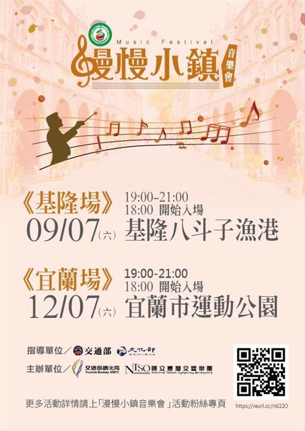 交通部觀光署108年9月7日及12月7日分別於基隆八斗子漁港、宜蘭市運動公園辦理2場次「漫慢小鎮音樂會」