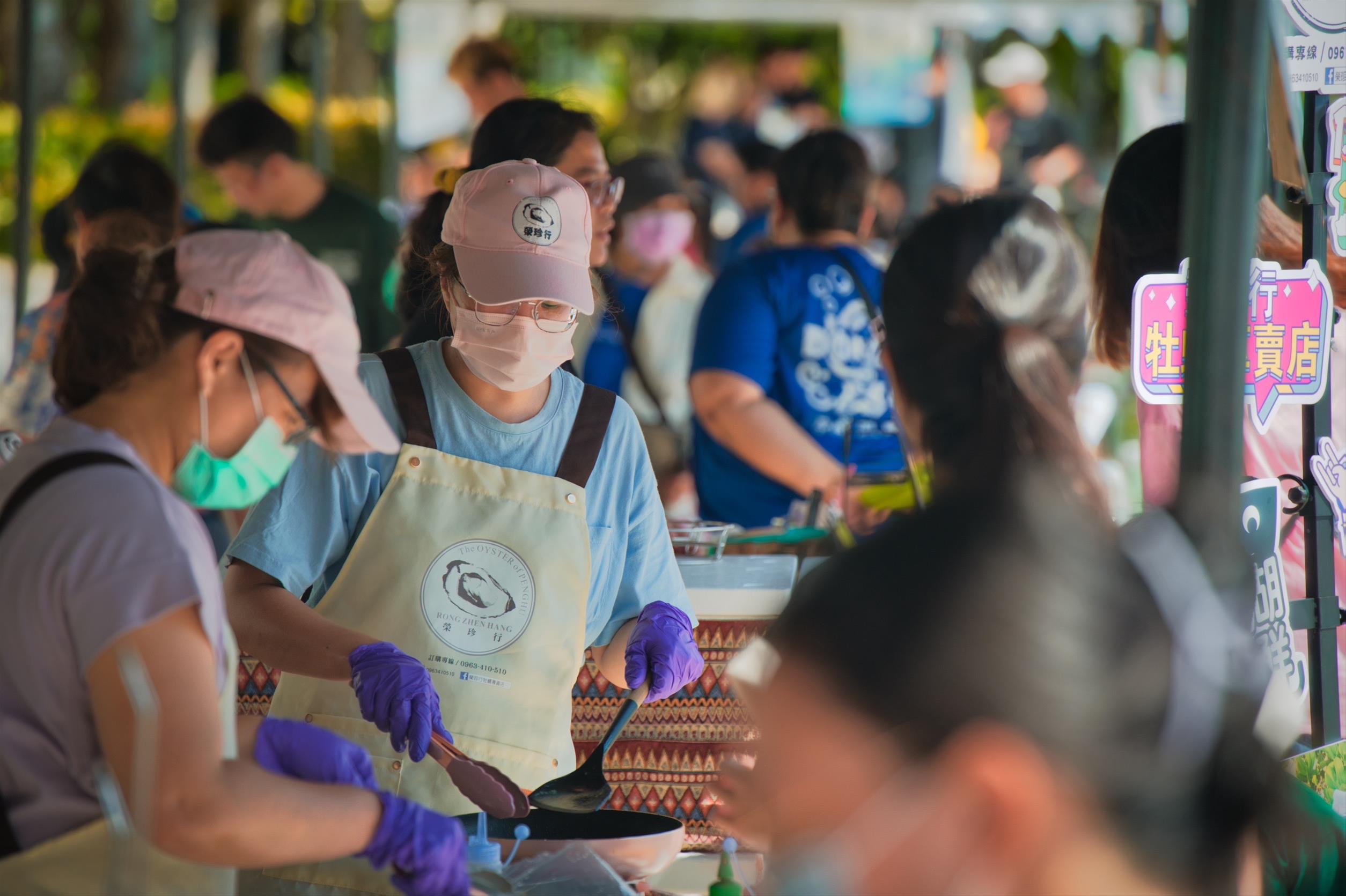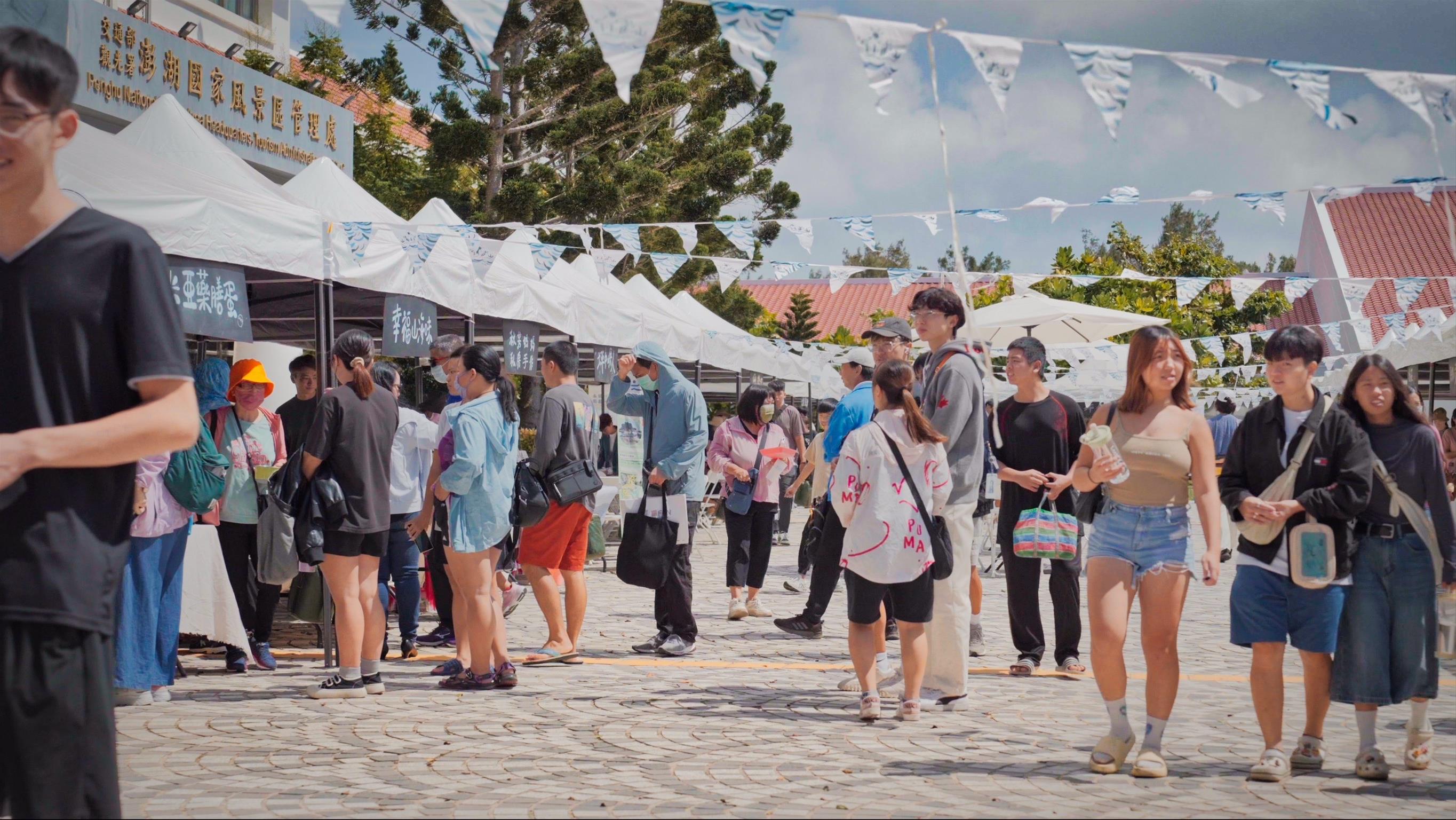 當日的戶外綠遊市集則是建立了一個永續平台,彙集許多具有永續理念的在地青年業者、工作室及社區團體,展示在地化產品和服務,使民眾能品嚐澎湖在地好味餐食,更能體驗創意親子手作、瞭解社區文化技藝與海洋環境教育等,讓民眾響應具永續及環保意識的消費行為。