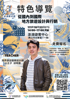 「特色導覽-從國內到國際,地方旅遊設計與行銷」邀請邱明憲講座,邱老師現職為「旅。咖啡Trip Cafe」店長、「旅庫彰化」網路旅遊服務平台創辦人、來地圖有限公司總監,在後疫情時代,國境慢慢的解封,觀光也要開始邁向國際旅行,過去兩年的疫情讓國旅爆發,接下來國際開放之後,國旅是否能保持優勢提升品質,吸引國外遊客來訪,國內旅遊產品又該如何將地方型旅行做到深度且優質的服務,學習結合特色導覽,邱老師將帶領我們來創造地方旅遊新亮點!