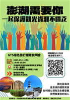 澎管處112年5月11日辦理「2023 GTS綠色旅行標章說明會」歡迎踴躍報名參與!