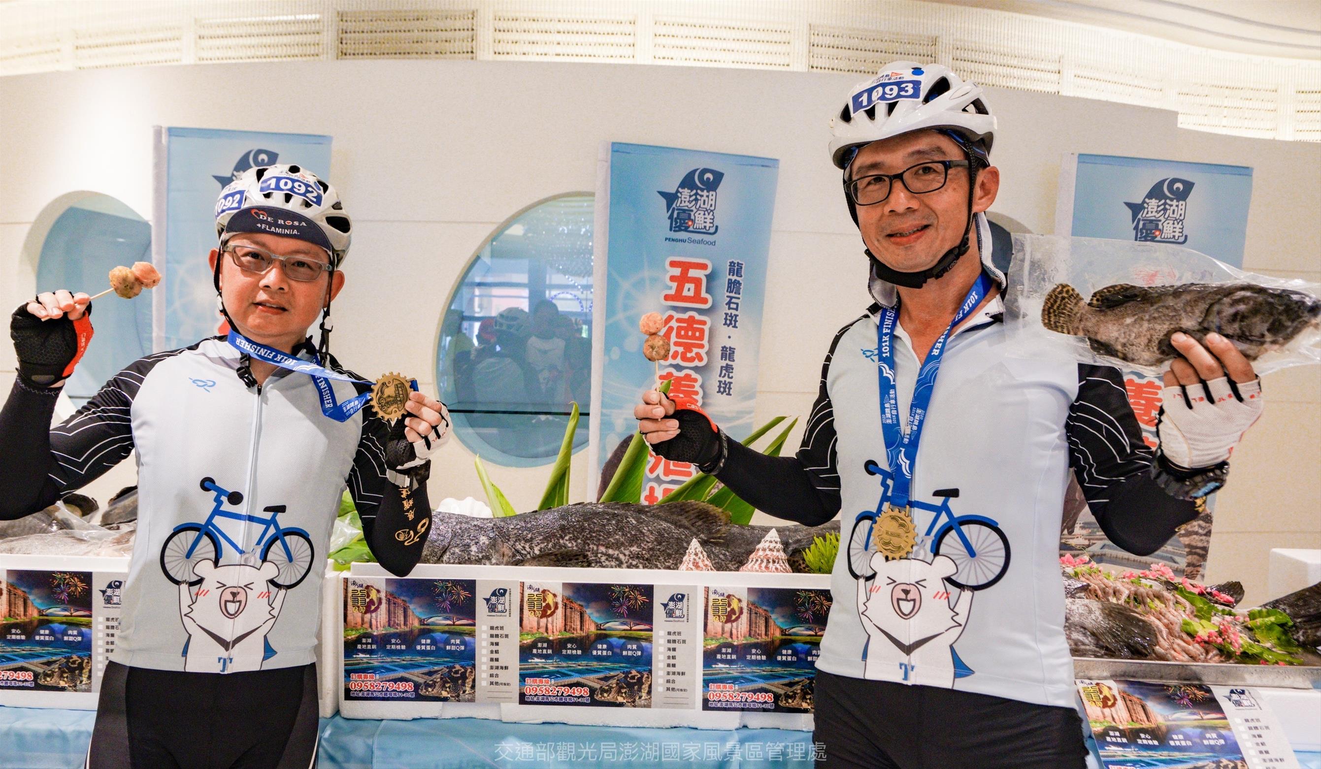 本次活動CP值破表,包含報名就送紀念衣、專屬水壺、活動束口帶及時尚foota聯名運動襪等,完賽禮還有完騎獎牌、客製化證書及享用龍膽石斑、花枝丸等澎湖在地特色海鮮美食,除此之外,現場還有機會抽中市值新臺幣5,680元的Airpods 3、新臺幣3,000元的特產大禮包及新臺幣1,280元的專業單車背心等多項好禮;報名費用挑戰組為新臺幣800元、休閒組為新臺幣600元(澎湖鄉親另有優惠)。