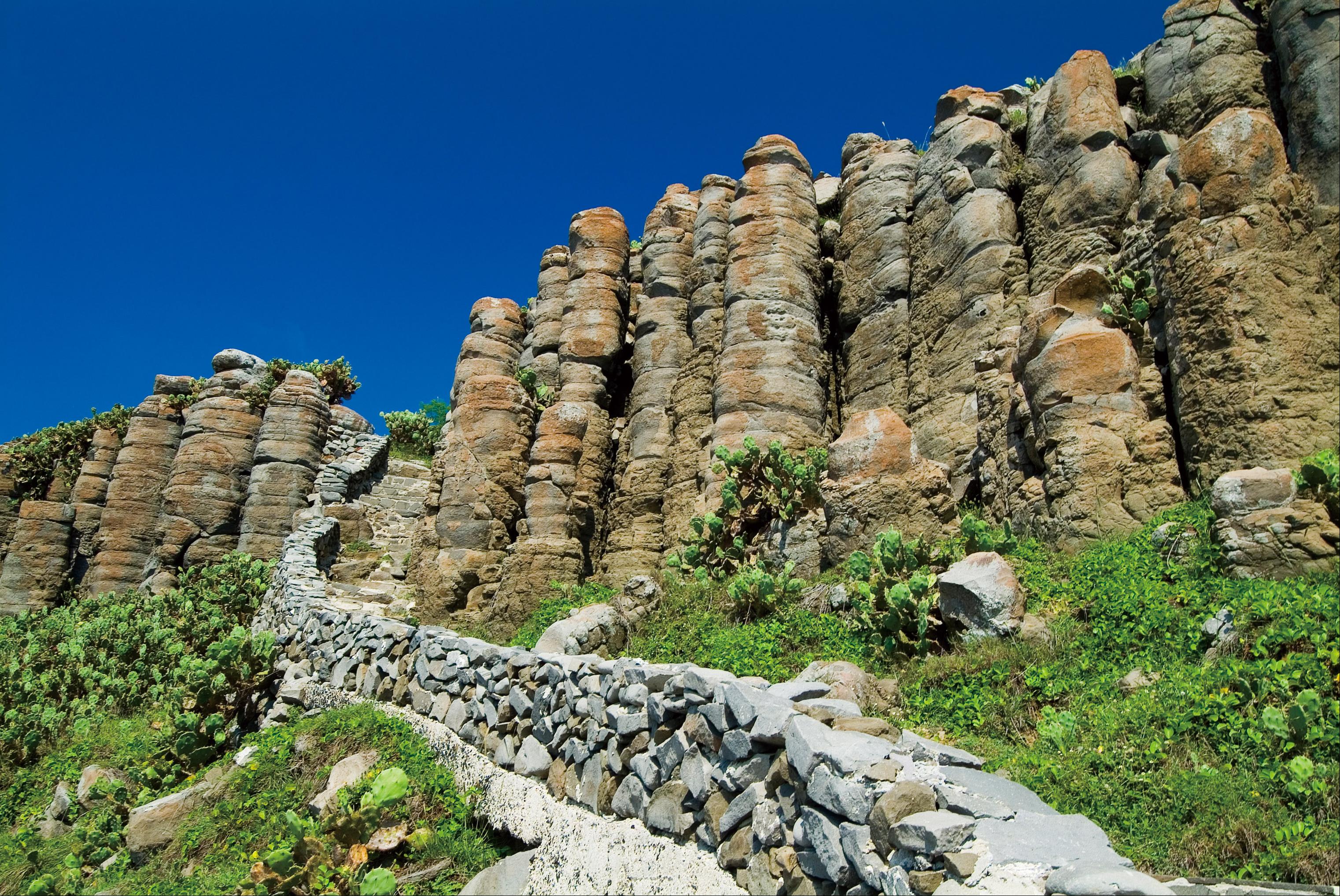 桶盤嶼後山柱狀玄武岩區地質脆弱多處落石崩落,為維安全,澎管處提醒遊客勿前往桶盤後山步道濱海遊賞逗留。
