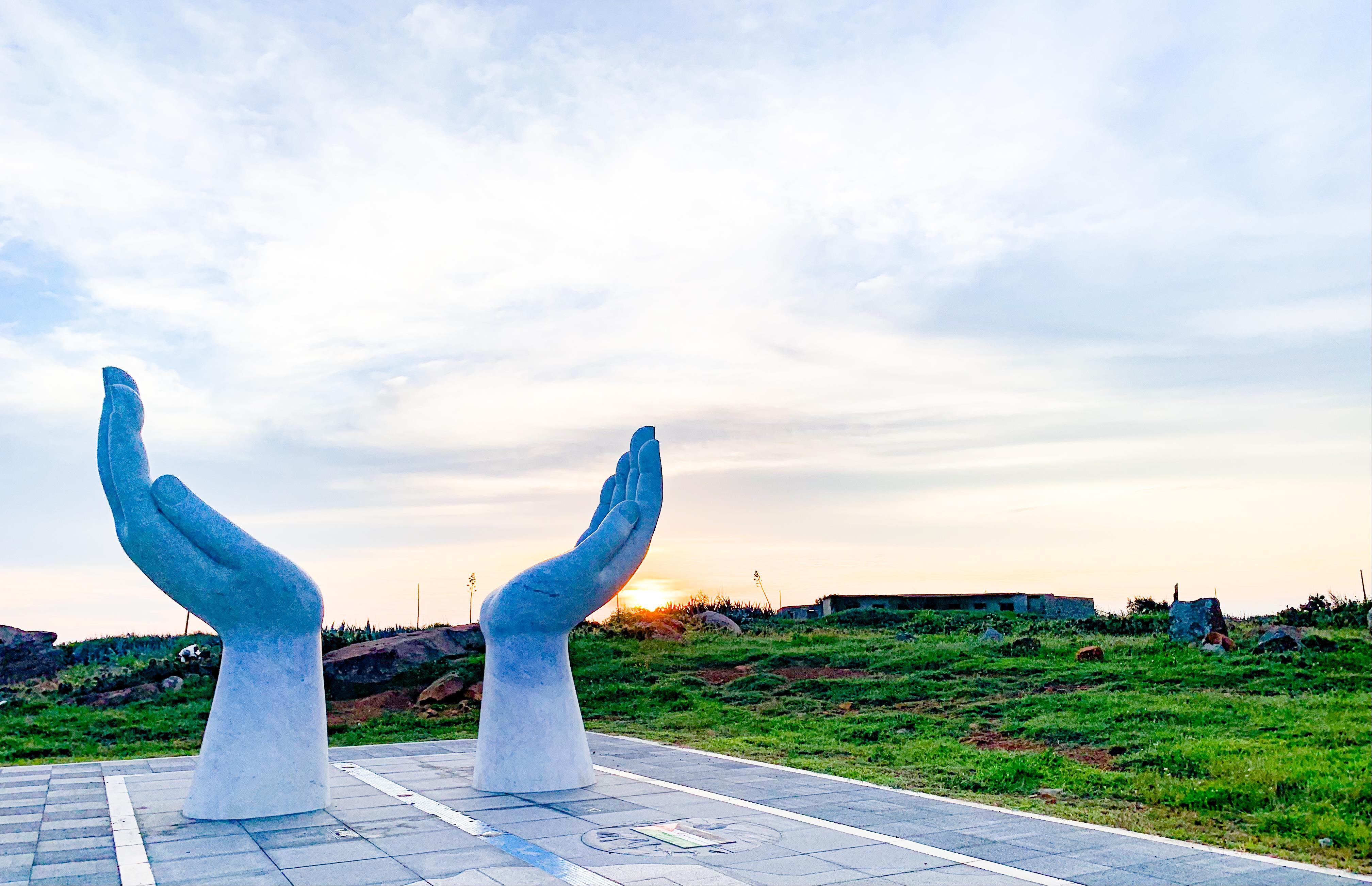步道終點的雙手意象,配合太陽照射角度隨季節變化,夕陽位置於春分秋分時位於正西,夏至日偏移至最北,冬至日偏移至最南,隨陽光變化景緻。