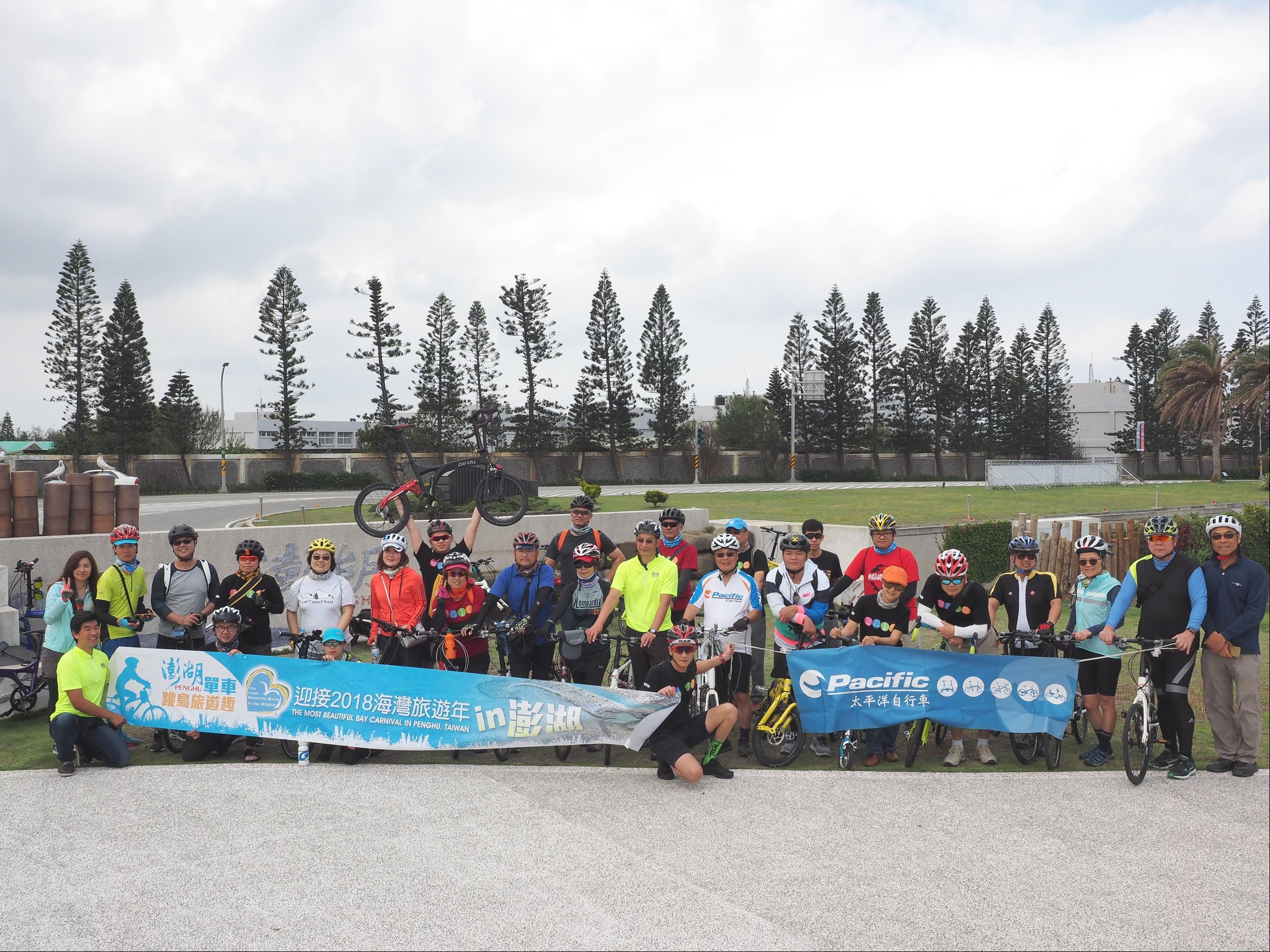 To promote “2018 Year of Bay Toursim” and the outstanding bike tourism environment of Penghu, Penghu National Scenic Area Administration led a group of 30 people, which included bikers of Pacific Bicycles, the Rolls-Royce of bikes, the media and bloggers, to fully experience the beauty of Penghu by crossing islands and chasing the wind on bikes.