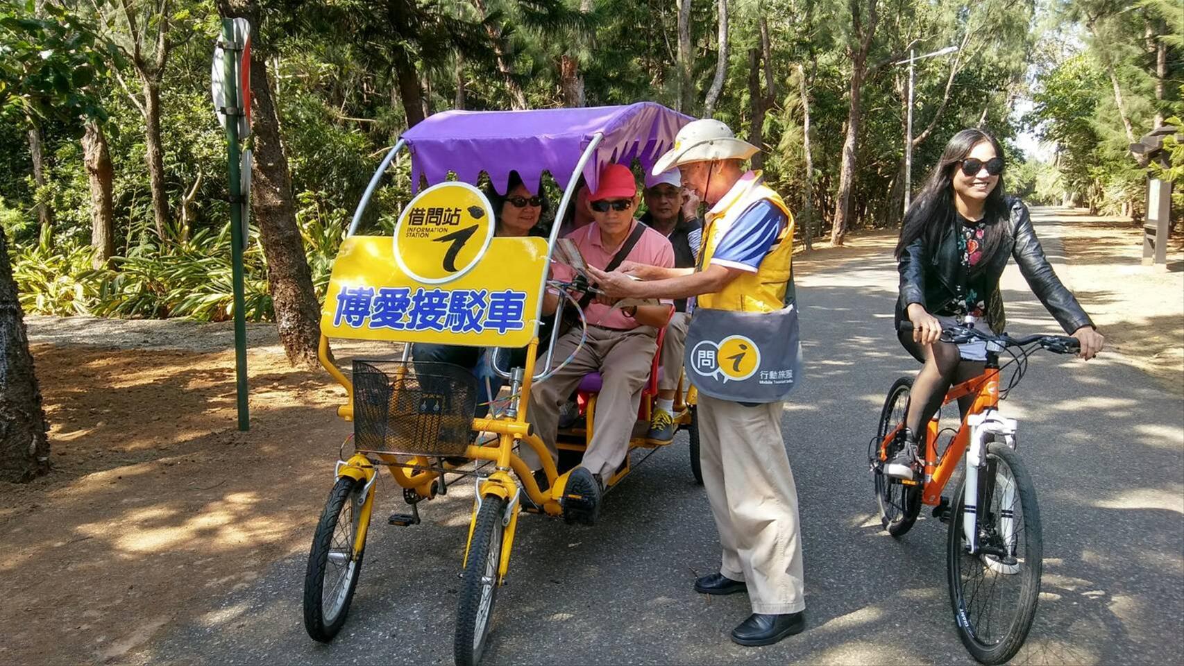 This event is carried out by coordinating with MOTC Tourism Bureau I-center (Mobile Tourist Info.) . By selecting a back garden with comprehensive recreational facilities, luxuriant trees, and great shade and shelter effects, Penghu National Scenic Area Headquarters organized the mobile service of “Penghu Recreation Park Line”. Penghu National Scenic Area Headquarters provides 10 free tourist bicycles for rent. Tourists or local residents can complete the rental procedure by just having to fill in an easy application form at the service counter of Penghu Tourist Center. Applicants can easily ride along shady Chrysanthemum Garden, Twin Lake Garden, and other attractions to leisurely enjoy forest Phytoncide.
