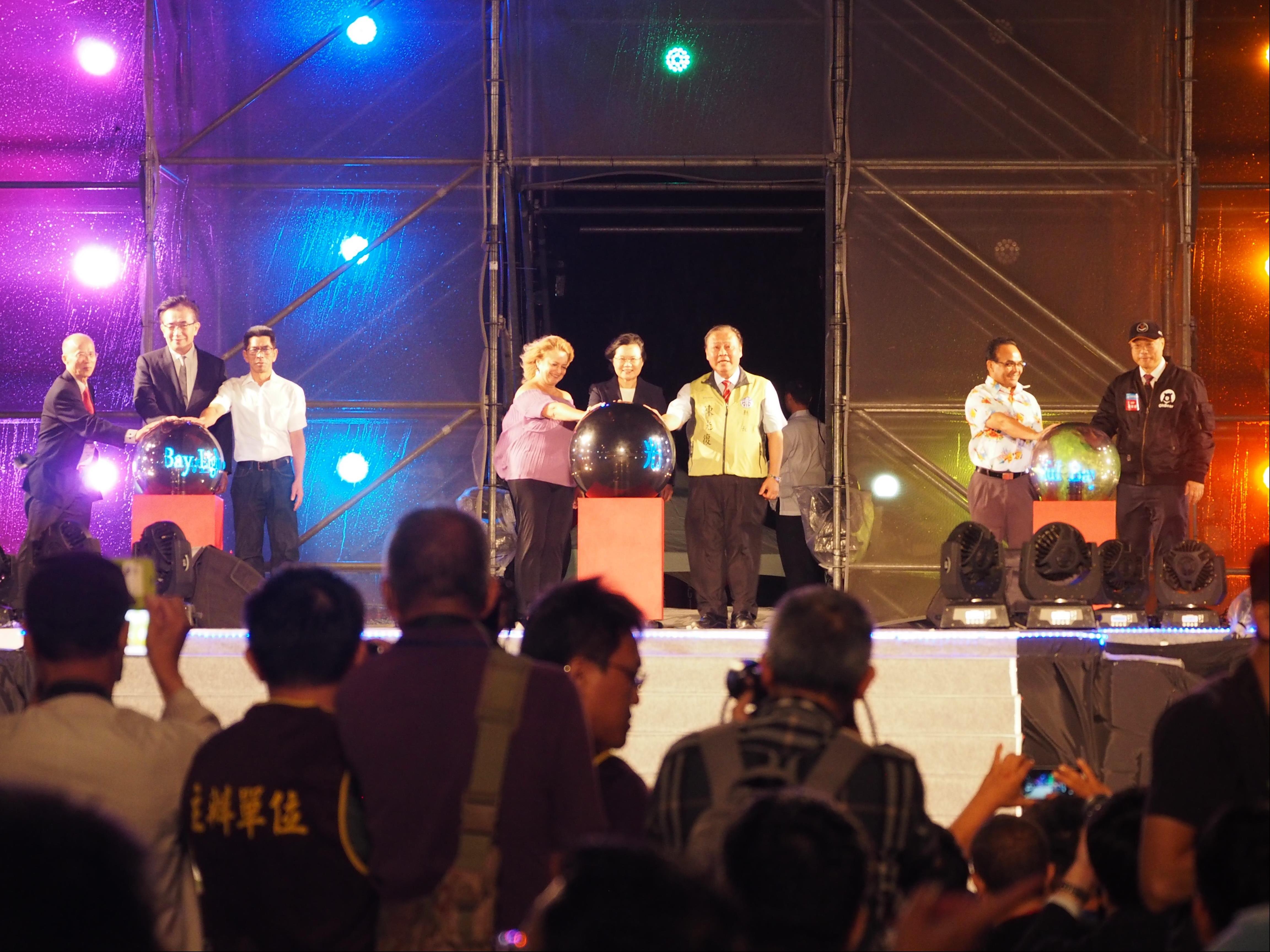 The "2018 Penghu International Light Festival" lighting ceremony was held by President Tsai, the MBBW Chairman, the Climate Change Committee Chairman, former Ambassador to France Lu Ching-Lung, Legislator Yang Yao, MOTC Minister Wu Hong-Mou, the MOTC Tourism Bureau Director Chou Yung-Hui, and County Governor Chen Kuang-Fu. The Guanyin Pavilion Waterfront Park was instantaneously filled with dancing lights that dazzled the crowd. The ceremony marked the commencement of the 2018 Penghu International Light Festival to build Taiwan’s first interactive ocean lighting park!
