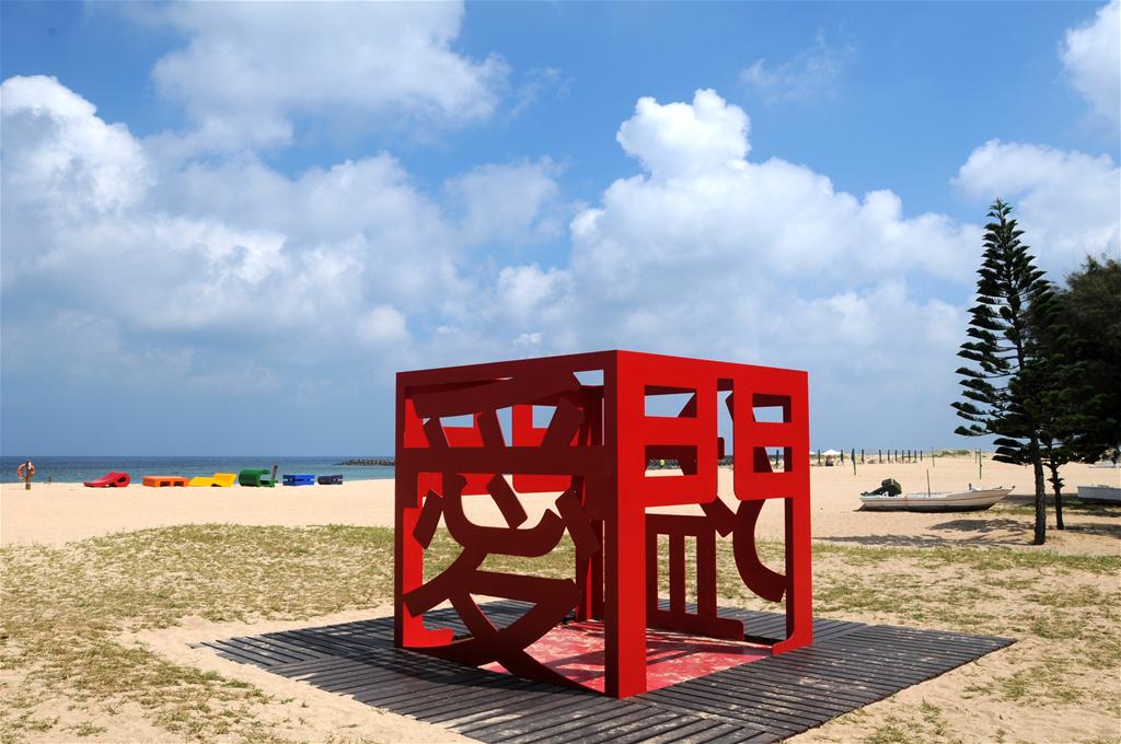 Couples posing and taking photographs with the red colored Love-Ai (愛。隘) words at Aimen Beach and uploading these romantic photographs to the “Chrysanthemum Island Fans Club” Facebook of Penghu National Scenic Area Administration with the password: Aimen Love - I'm in Love at the Penghu Islands can provide their addresses through private messaging in order to receive a romantic souvenir certificate from the Administration (limited edition with 500 copies)