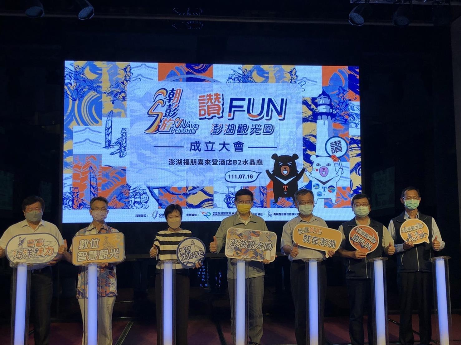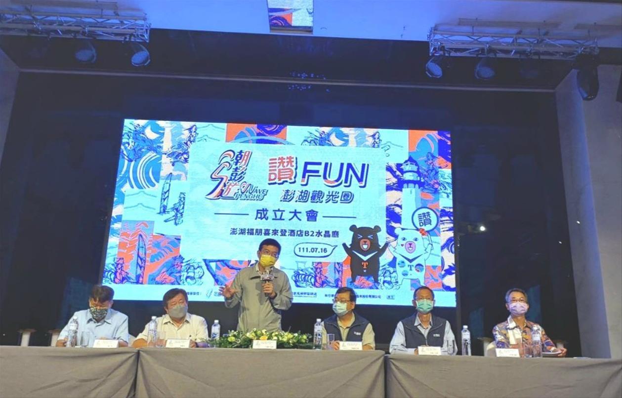 Penghu National Scenic Area Administration of Tourism Bureau, Ministry of Transportation and Communications (Penghu-NSA) is promoting sustainable tourism in Penghu under the “Wave Penghu” brand based on the concept of digital tourism. The Penghu Tourism Circle was officially established on July 16, with Minister of Transportation and Communications - Wang Kuo-tsai, Director-General of Tourism Bureau - Chang Shi-chung, Penghu County Magistrate - Lai Feng-wei, Legislative Yuan member - Yang Yao, Penghu County Council Speaker - Liu Chen Zhao-ling and Penghu-NSA Director - Hsu Tsung-min, all on hand to witness the event. Minister Wang said that the time for tourism revitalization is now and hoped that Penghu tourism will continue to shine like a pearl of the sea.