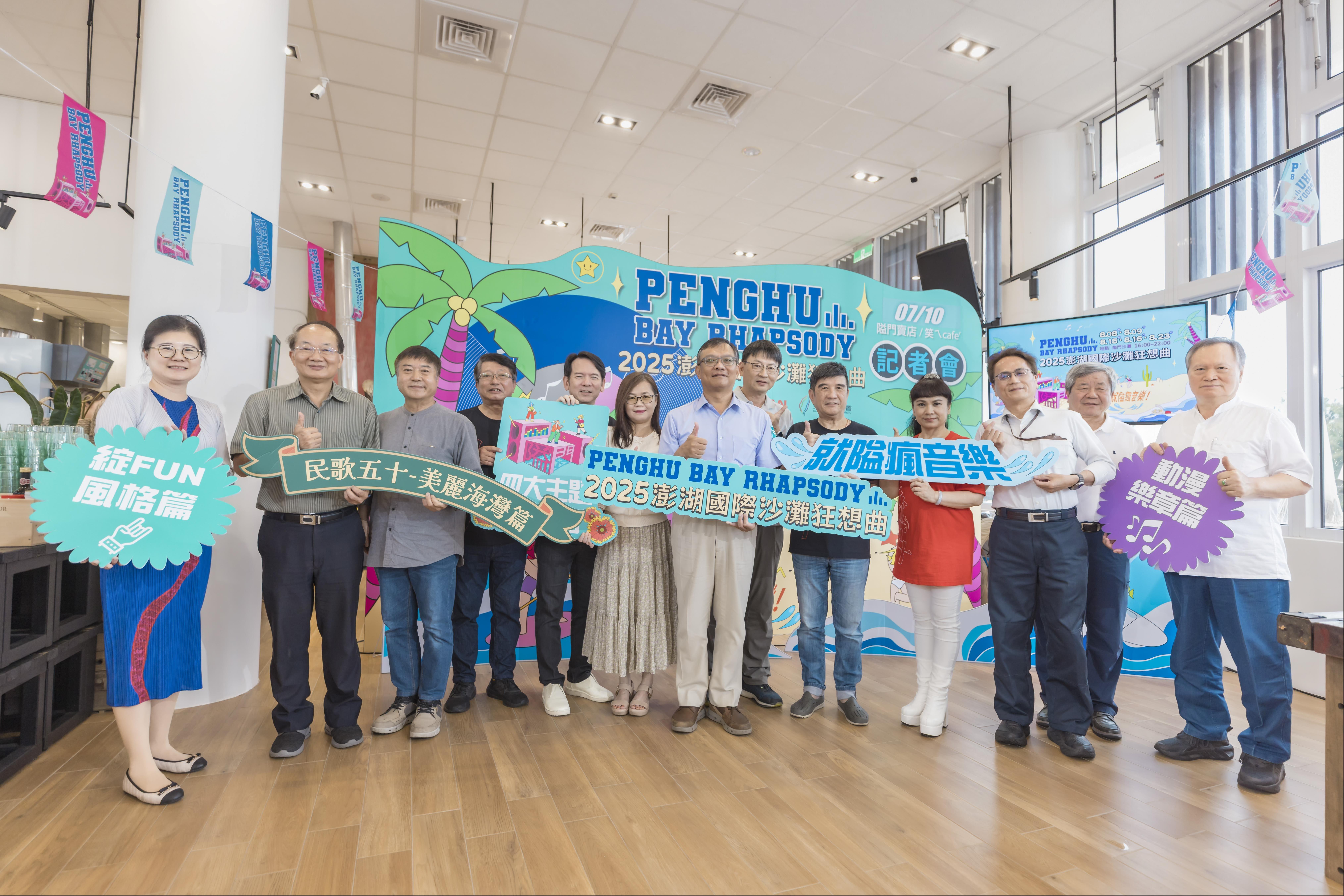 中華民国交通省観光庁澎湖国立景観地域管理部(以下「当管理部」といいます)は、澎湖が「世界で最も美しい湾クラブ」メンバーとしてのブランド価値を創造し、澎湖観光の国際的知名度向上を目的とするイベント「2025澎湖ベイラプソディ」を企画し、2025年7月10日に澎湖隘門海岸で人気のオーシャンビューカフェ「笑ㄟcafé」において広報記者会見(以下「本記者会見」)を行いました。本記者会見においては、司会進行役を務めた当管理部部長・郭振陵が当該イベントを精力的に宣伝したほか、澎湖県湖西郷・陳振中郷長、中華民国内務省国立公園庁海洋国立公園管理部・林尚卿副部長、澎湖県観光部・劉美凡副部長、中華民国交通省民間航空局澎湖飛行場・邱永昇主任、澎湖県湖西郷隘門地区発展協会・洪文藝芸理事長らとともに、多数のご来賓及びメディア関係者に向けて当該イベントのテーマが「就隘瘋音楽」であることを公表しました。