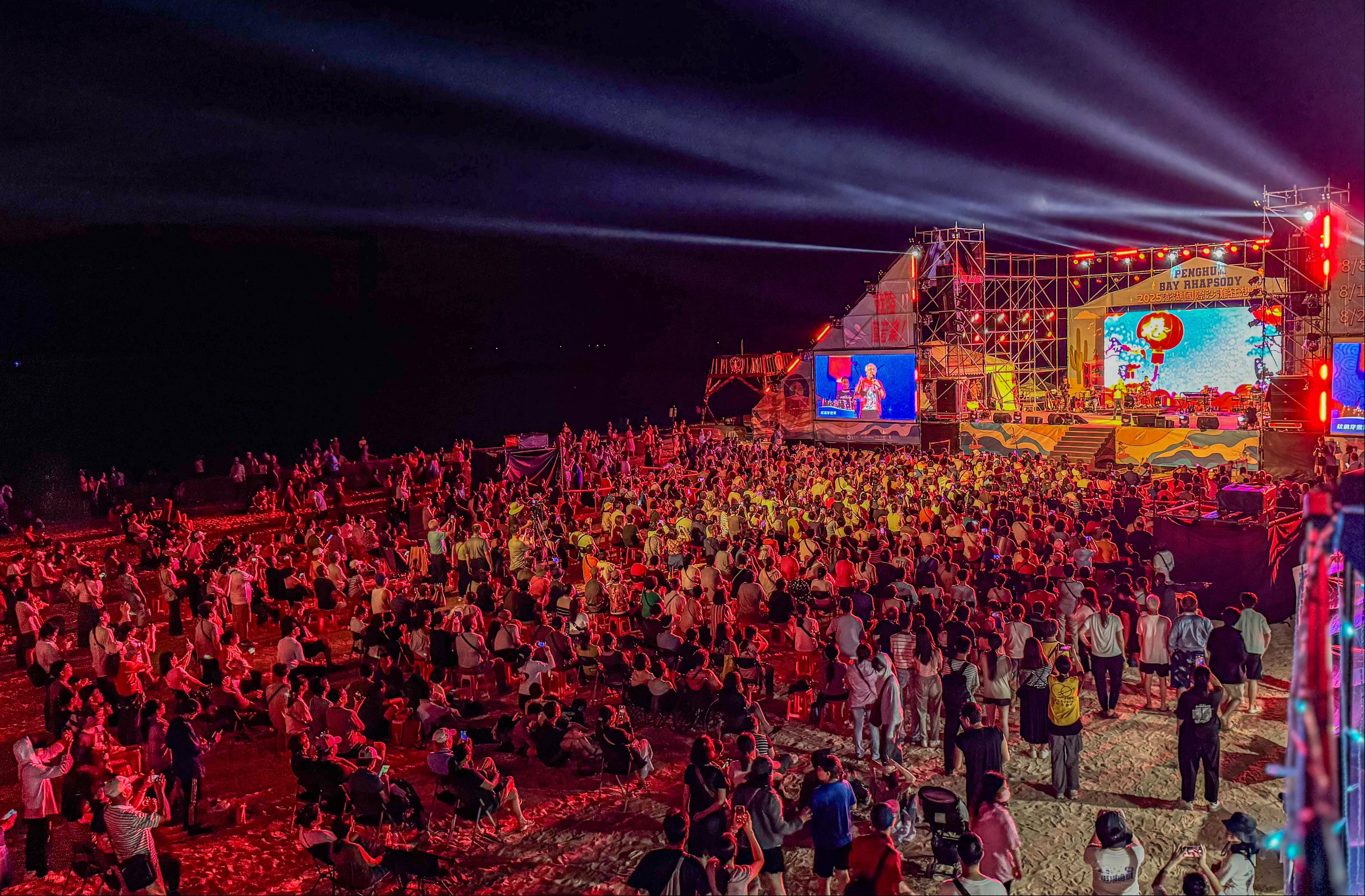 The “2025 Penghu Bay Rhapsody”, meticulously organized by the Penghu National Scenic Area Headquarters, Tourism Administration, MOTC (herein after referred to as the Penghu Administration), had its grand opening at Aimen Golden Beach, Lintou, on Friday, August 8. The event was hosted by the Director of the Penghu Administration, Chen-Ling Kuo and included many guests and media representatives, including the Vice Speaker of the Penghu County Council, Kai-Yuan Lan, the Deputy Director of the Tourism Department, Penghu County Government, Mei-Fan Liu, the Penghu County Council Member, Chun-Chin Lu Huang, the Penghu County Council Member, Jen-Ho Chang, the Deputy Director of the Marine National Park Headquarters, National Park Service, Ministry of the Interior, Shang-Ching Lin, and the Mayor of the Huxi Township, Penghu County, Jhen-Jhong Chen. All of these special guests came together to kick off this year’s unique and innovative theme, “Jamming in Aimen”. Legendary folk singers were invited to give live performances at the “Folk Song 50 in Penghu - Beautiful Bay Edition”, the first themed concert of the “2025 Penghu Bay Rhapsody”, to bring back popular folk songs to evoke warm feelings of nostalgia in the audience as they vibed together in the cool sea breeze of the summer night.