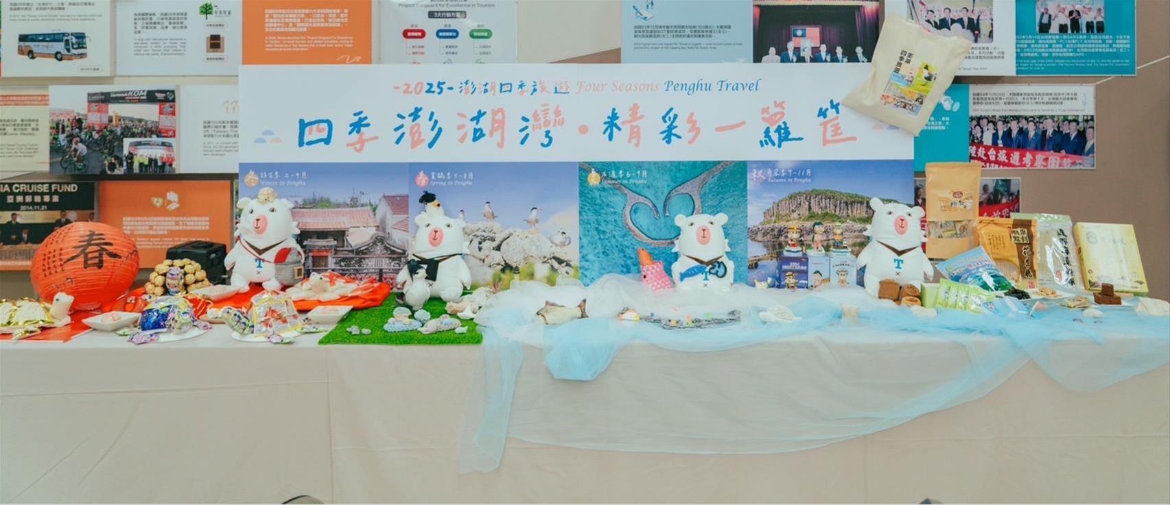 A special highlight of the event was a captivating live performance by the IYouAma Band, featuring a medley of iconic songs, including Grandma’s Penghu Bay, Penghu Love Song, and Longing for the Spring Breeze(Bāng Chhun-hong). This musical journey beautifully illustrated the diverse and vibrant essence of Penghu’s year-round tourism experience. The event also featured a lively appearance by OhBear, the mascot of the Tourism Administration, alongside HiBear, the official mascot of the Penghu NSA. The duo engaged in a fun-filled runway showcase and interactive performance, bringing the highlights of Penghu's four-season tourism to life. Their energetic presence added to the festive atmosphere, immersing attendees in the enchanting charm of Penghu throughout the year. Additionally, a Four Seasons Penghu Highlights Exhibition Zone was set up on-site, showcasing the essence of Penghu’s seasonal tourism. The exhibition featured a realistic stone weir model, stunning images of iconic attractions, and an array of themed souvenirs. Thoughtfully designed to create an immersive experience, the setup allowed guests to visually and sensorially explore the distinct appeal of each season in Penghu.