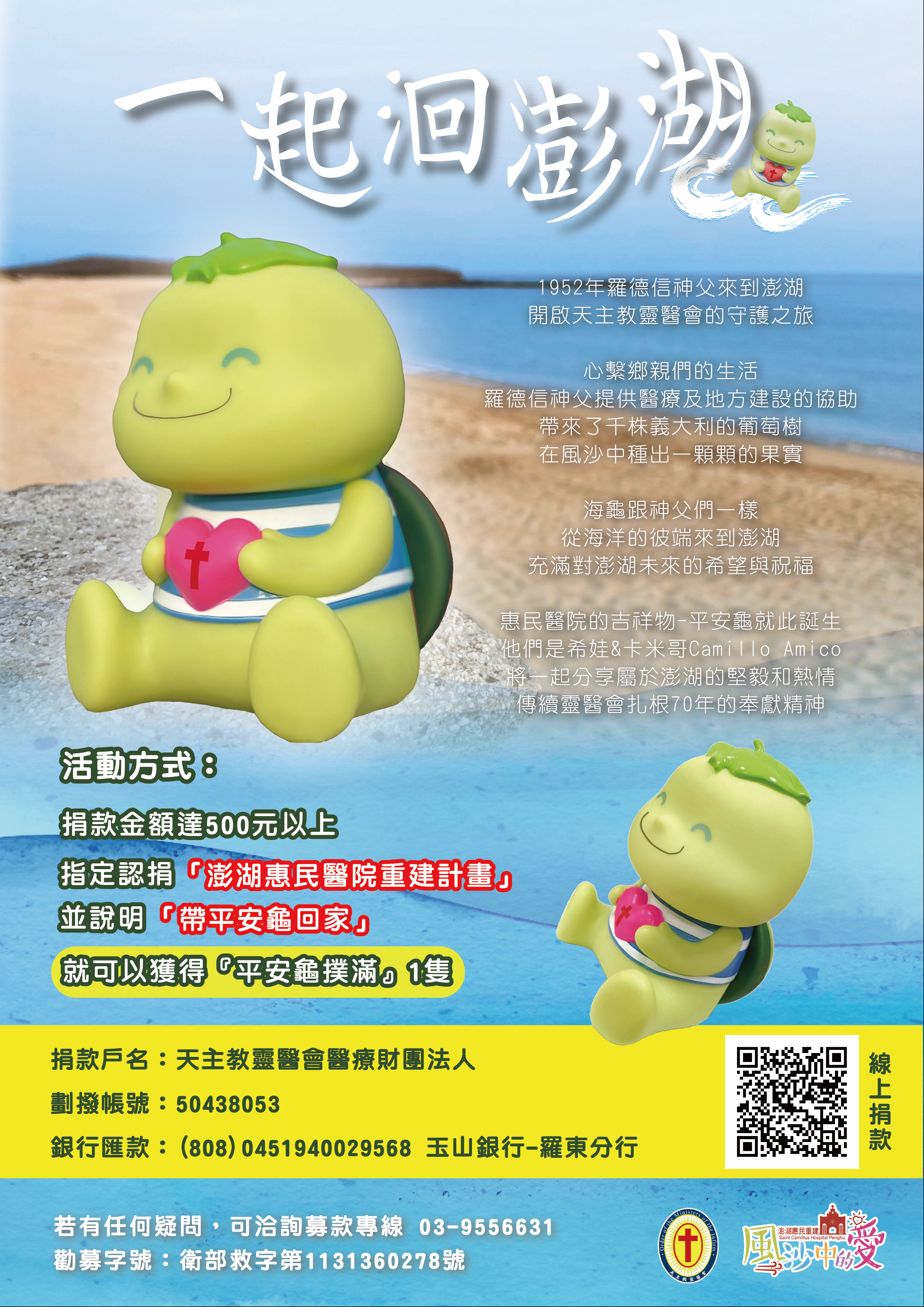 Beyond boosting Wangan’s tourism economy, the event also integrates public welfare and community support. Runners can opt to add NT$450 during registration to purchase a St. Camillus Hospital Penghu Reconstruction Project mascot piggy bank – “Pingan Turtle (平安龜)”. For every purchase, the Penghu National Scenic Area Headquarters will donate NT$500 in the runner’s name to the St. Camillus Hospital Penghu Reconstruction Fund, combining fitness with philanthropy. Let’s run for love and a great cause!