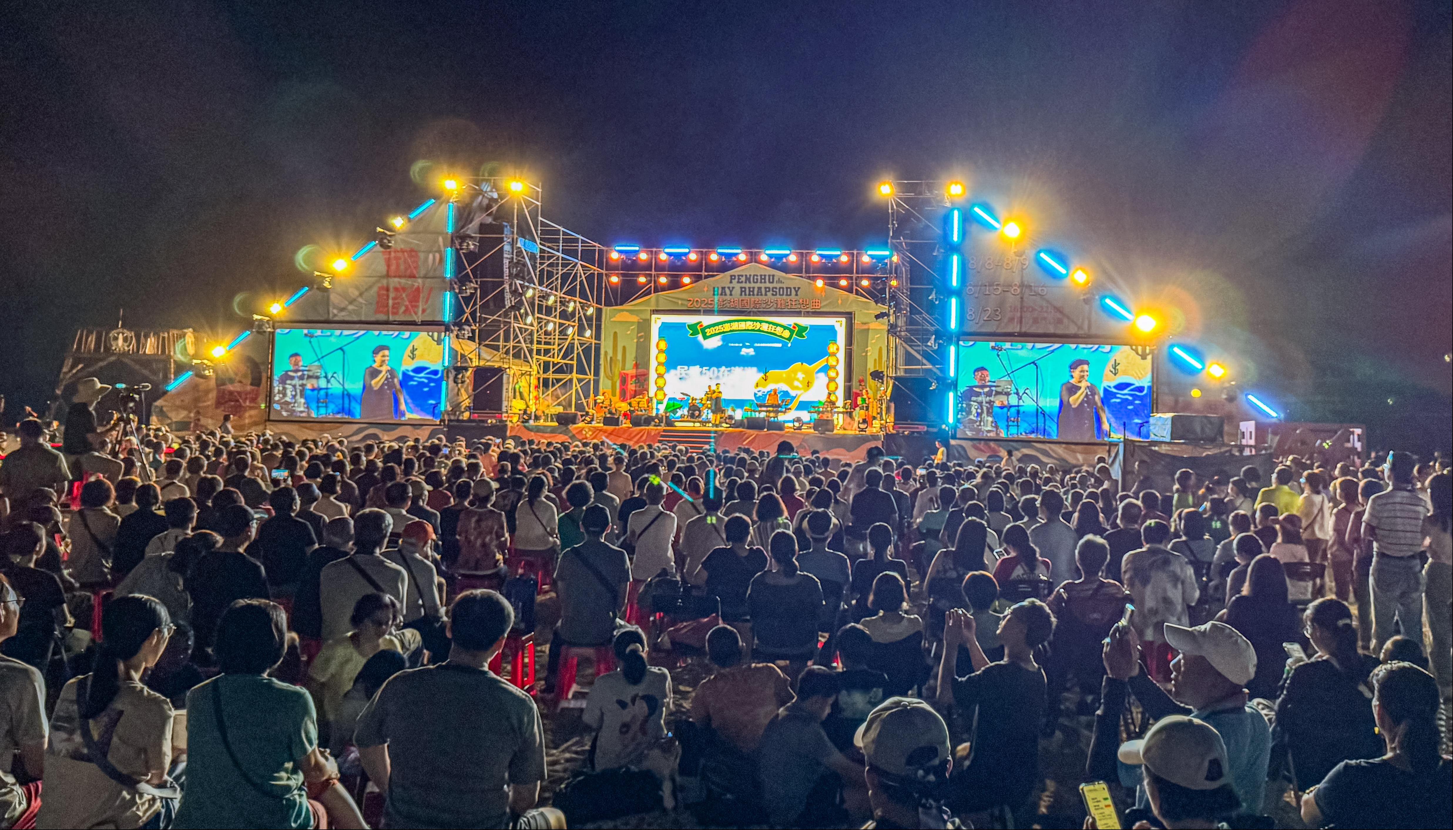2025年8月8日金曜日、隘門・林投海岸において、交通部観光署澎湖国家風景区管理処(以下「澎管処」)がかねてより準備を重ねてきたイベント「2025澎湖ベイラプソディ」が盛大に開幕しました。当イベントは郭振陵処長による司会進行のもと、澎湖県議会の藍凱元副議長、澎湖県観光部の劉美凡副部長、澎湖県議会議員の呂黄春金氏・張仁和氏、内政部国家公園署海洋国家公園管理処の林尚卿副処長、澎湖県湖西郷公所の陳振中郷長をはじめとする多数のご来賓およびメディア関係者が来場し、今年最もユニークな「就隘瘋音楽」の幕開けが盛大に飾られました。「2025澎湖ベイラプソディ」開幕公演となったテーマコンサートコンサート「フォークソング50in澎湖―麗しの湾編」では、フォークソング界の伝説的な歌手誰たちによる名曲が披露され、夏の夜の涼やかな海風に揺られながら、観客は懐かしい記憶を呼び起こすようなひとときを楽しみました。