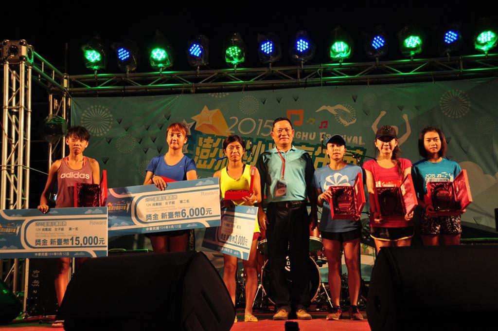 当処が入念に計画した夏休みの目玉観光イベント「2015澎湖ビーチカーニバル」では、合計1000人を超える参加者が澎湖ビーチマラソンイベントに参加しました。会場では、12k男子グループ第1位ケニア人Richard Mutusyar(成績00:48:35)で、第2位柏聖(00:50:34)で、第3位黄文良(00:52:01)で、および女子グループ第1位李瑋微(00:59:23)で、第2位游雅君(01:02:15)で、第3位方雅慧(01:05:28)で、6k男子グループ第1位林威揚(00:23:12)で、第2位俞祥豪(00:25:08)で、第3位李金聡(00:27:01)および女子グループ第1位・呉奕萱(00:30:25)で、第2位李庭榛(00:36:43)で、第3位陳美恵(00:36:58)の各グループ男女上位3名に賞金総額8万元を超える豪華な賞が贈られました。人々の熱意とサポートに応え、会場ではマンダリン航空などの航空業者がチームを組んでマラソンに参加したり、マンダリン航空馬公台湾チケットを景品とした抽選が行われたりしました。また、現地業者は民宿や宿泊の優待で旅行者を惹きつけ、力を合わせて澎湖観光をアピールしました。続いて夕方に行われたビーチライブはさらに好評を博しました。金曲歌王リッキーシャオを招いて45分に及ぶメインライブを行い、「2015澎湖ビーチカーニバル」の最後を飾りました。